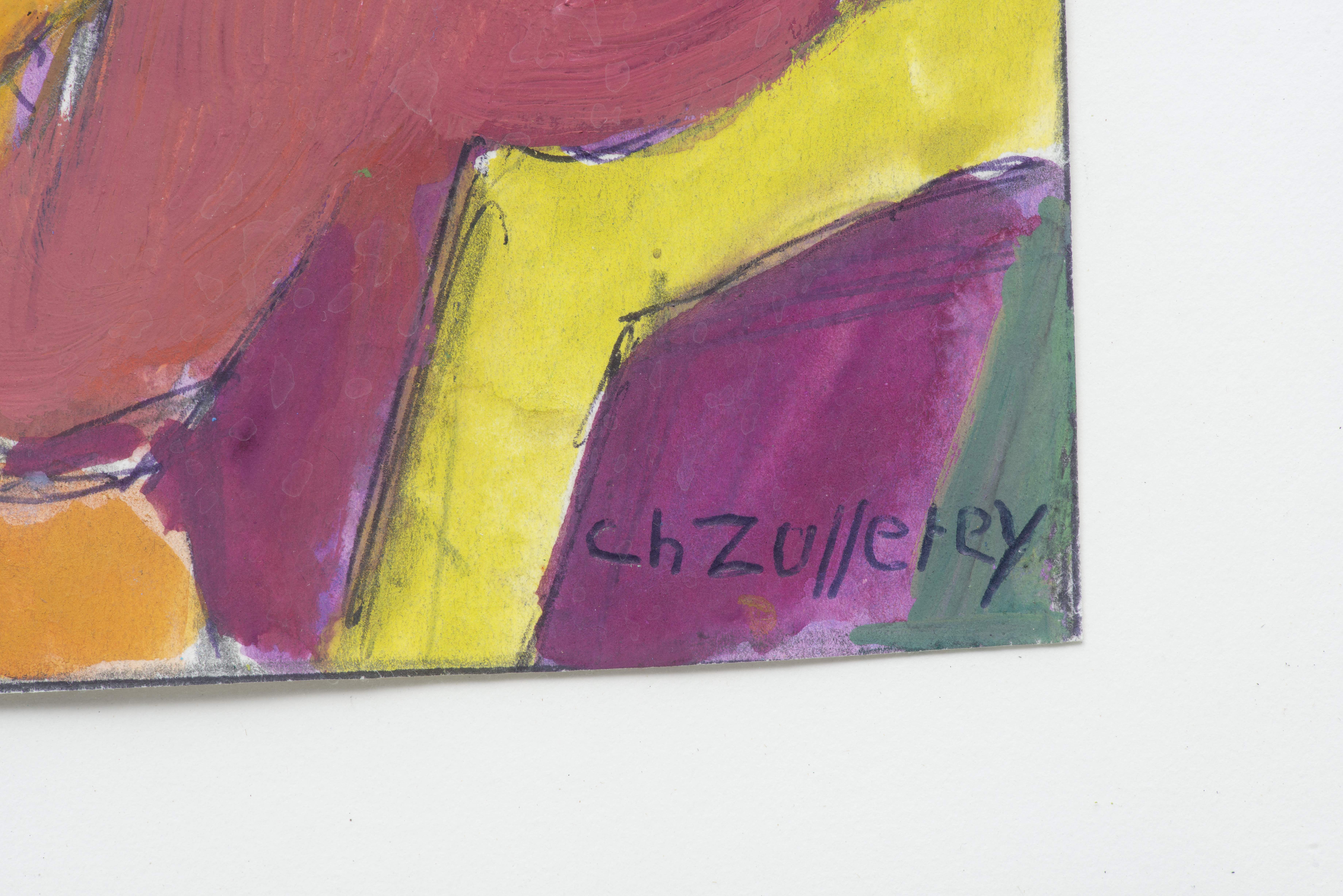 Christiane ZUFFEREY (1920-2011), "Terrasse ensoleillée", gouache sur papier, signé en bas à droite.