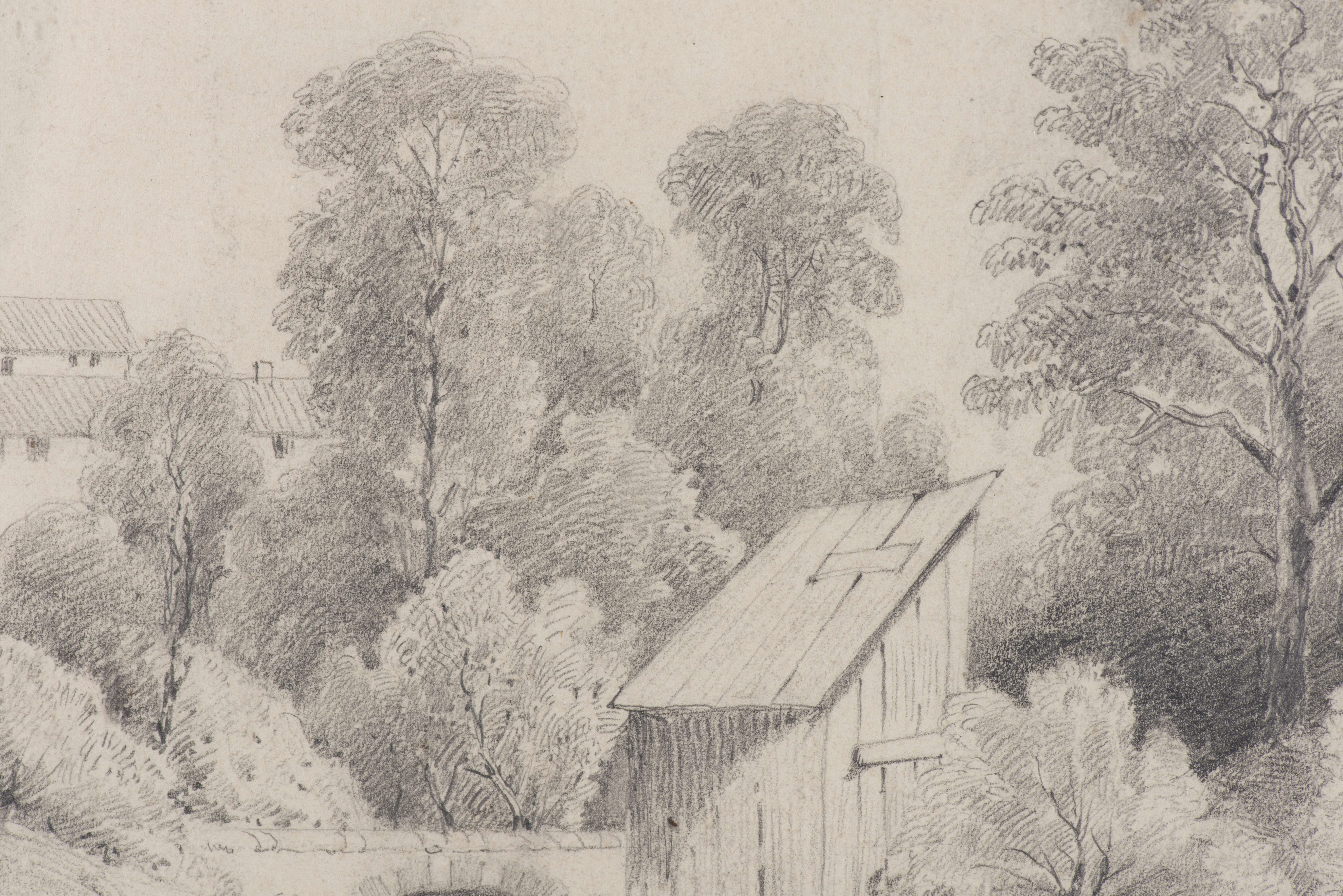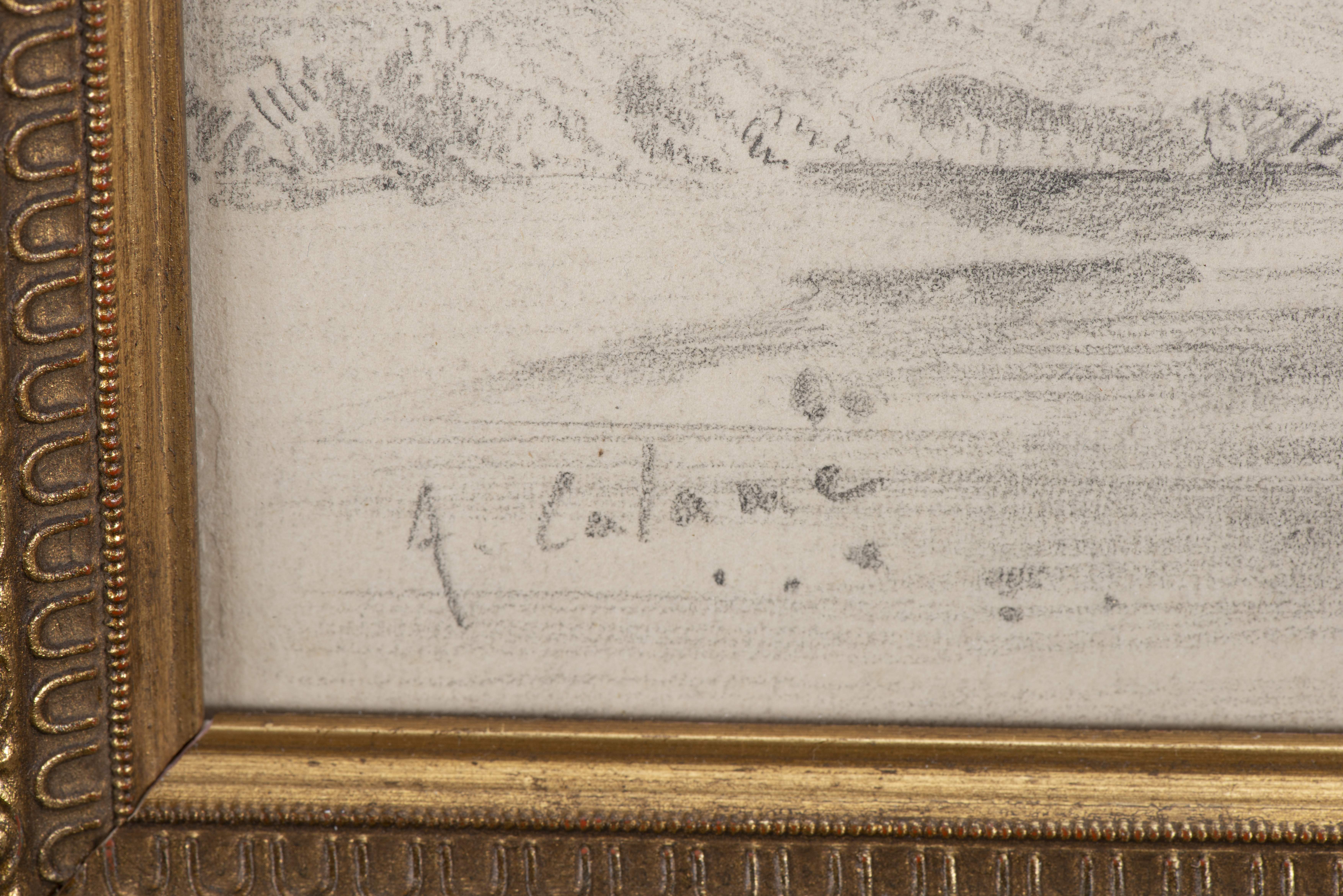 Arthur CALAME (1843-1919), "Bord de rivière", Ensemble de deux dessins au crayon sur papier, signé