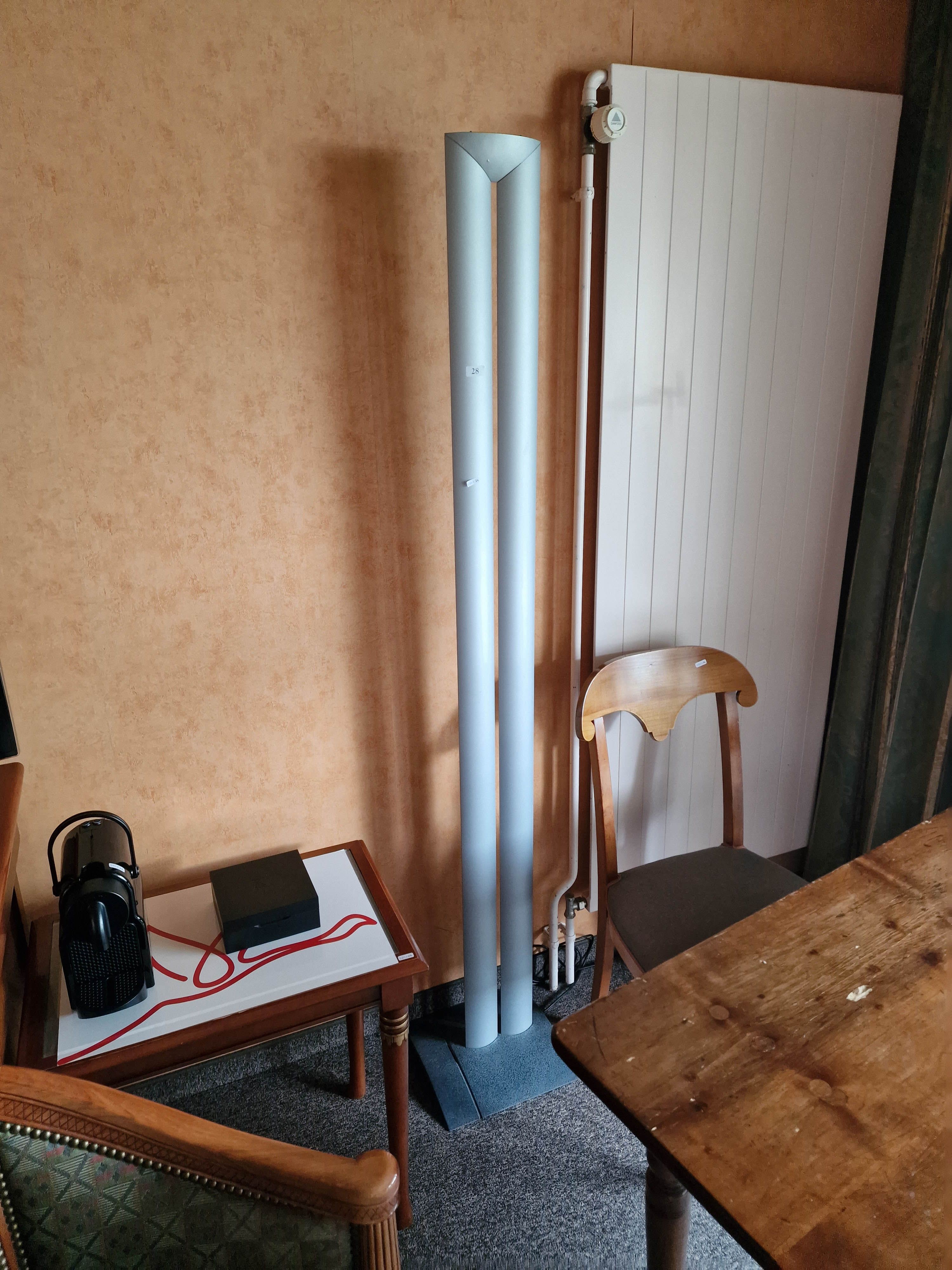 JURGEN MEDEBACH, Belux lampadaire, fût en métal et piétement en fer forgé