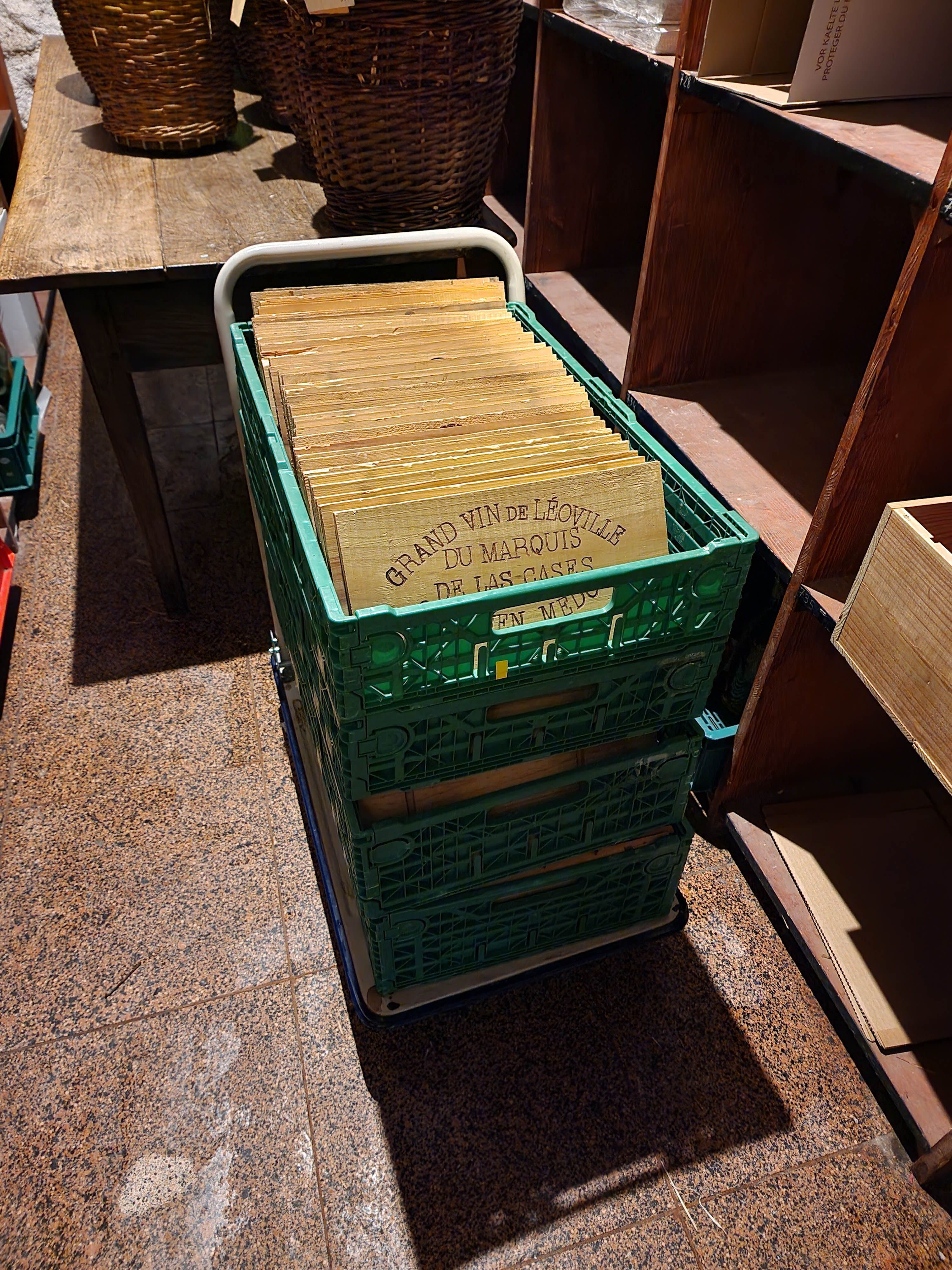 Lot de divers avants de caisses à vin en bois ou plaques portant le nom des divers châteaux pour agrémenter une paroi.