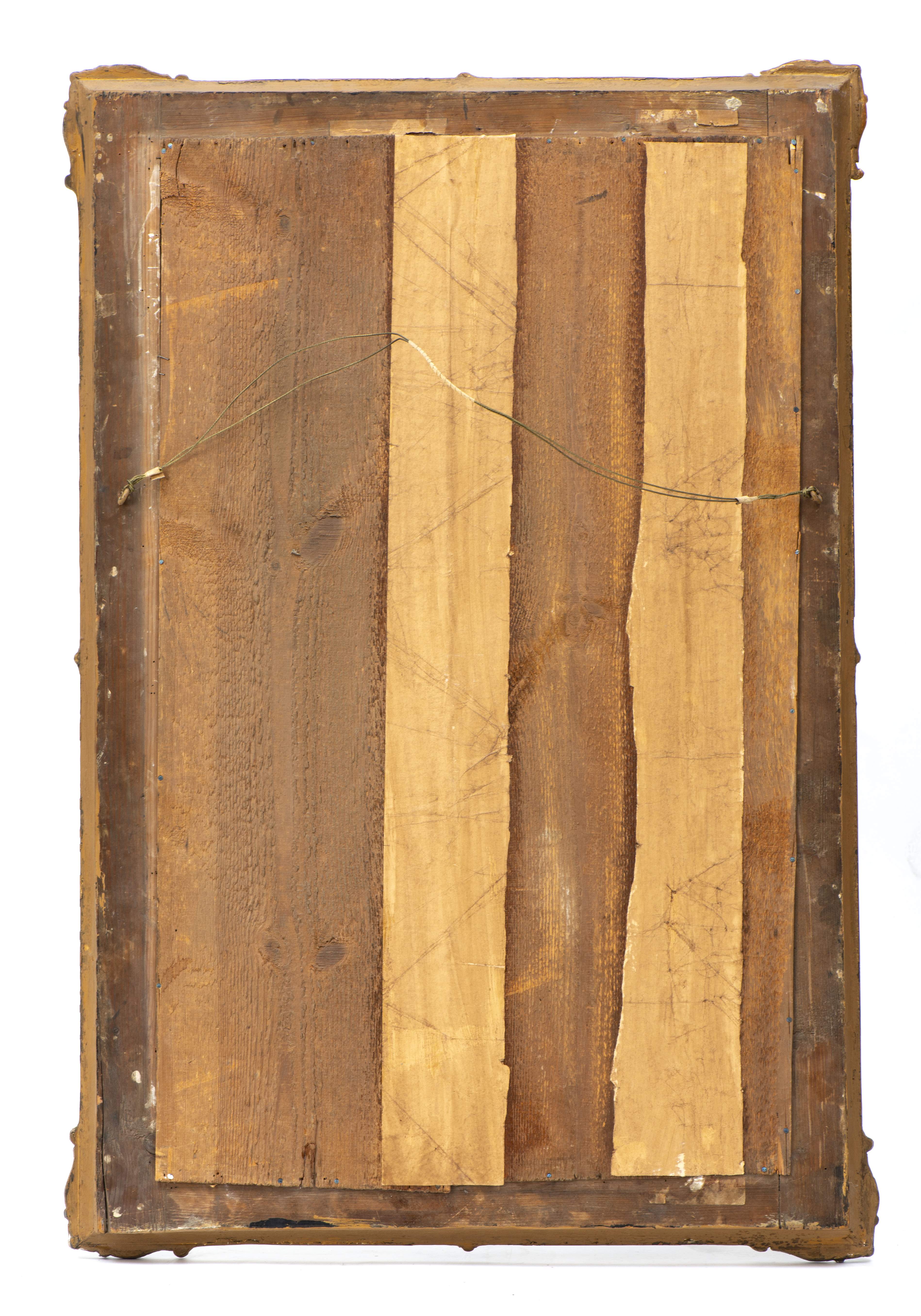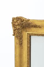 Miroir rectangulaire à cadre en bois et stuc doré, glace au mercure.