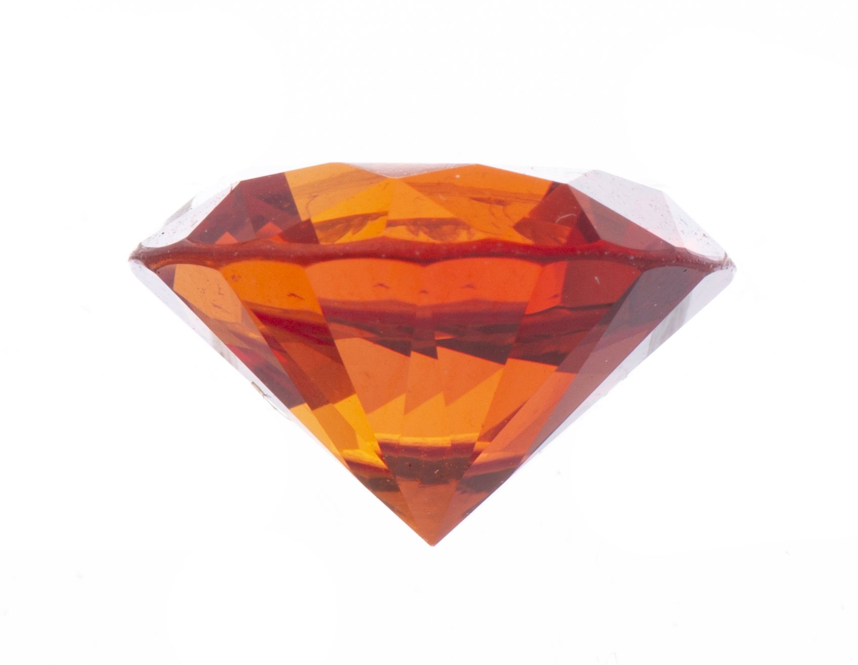 On y joint un saphir synthétique non montée de couleur vermillon de taille rondiste