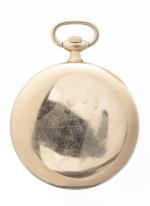 ALEX HUNING Genève, montre de poche en or jaune .585 numéro 56760, cadran doré à chiffres arabes pour les heures, chemin de fer pour les minutes, et seconde subsidiaire à 6h avec chemin de fer et dizaines arabes, aiguilles breguet en fer bleuï. Vers 1910.