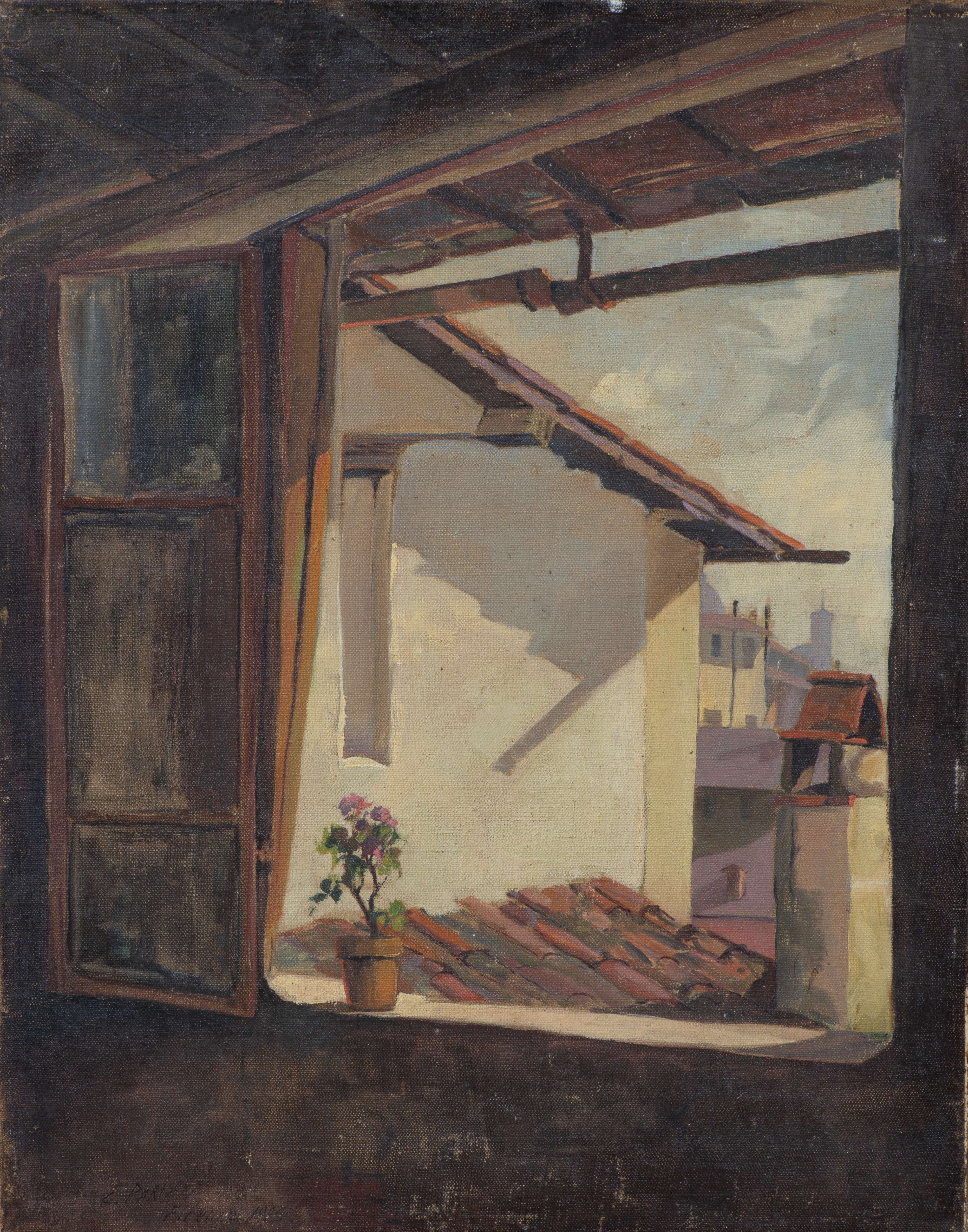 Charles PARISOD (1891-1943), 'La fenêtre', Huile sur carton, signé, localisé "Firenze" et daté 1925 en bas à gauche