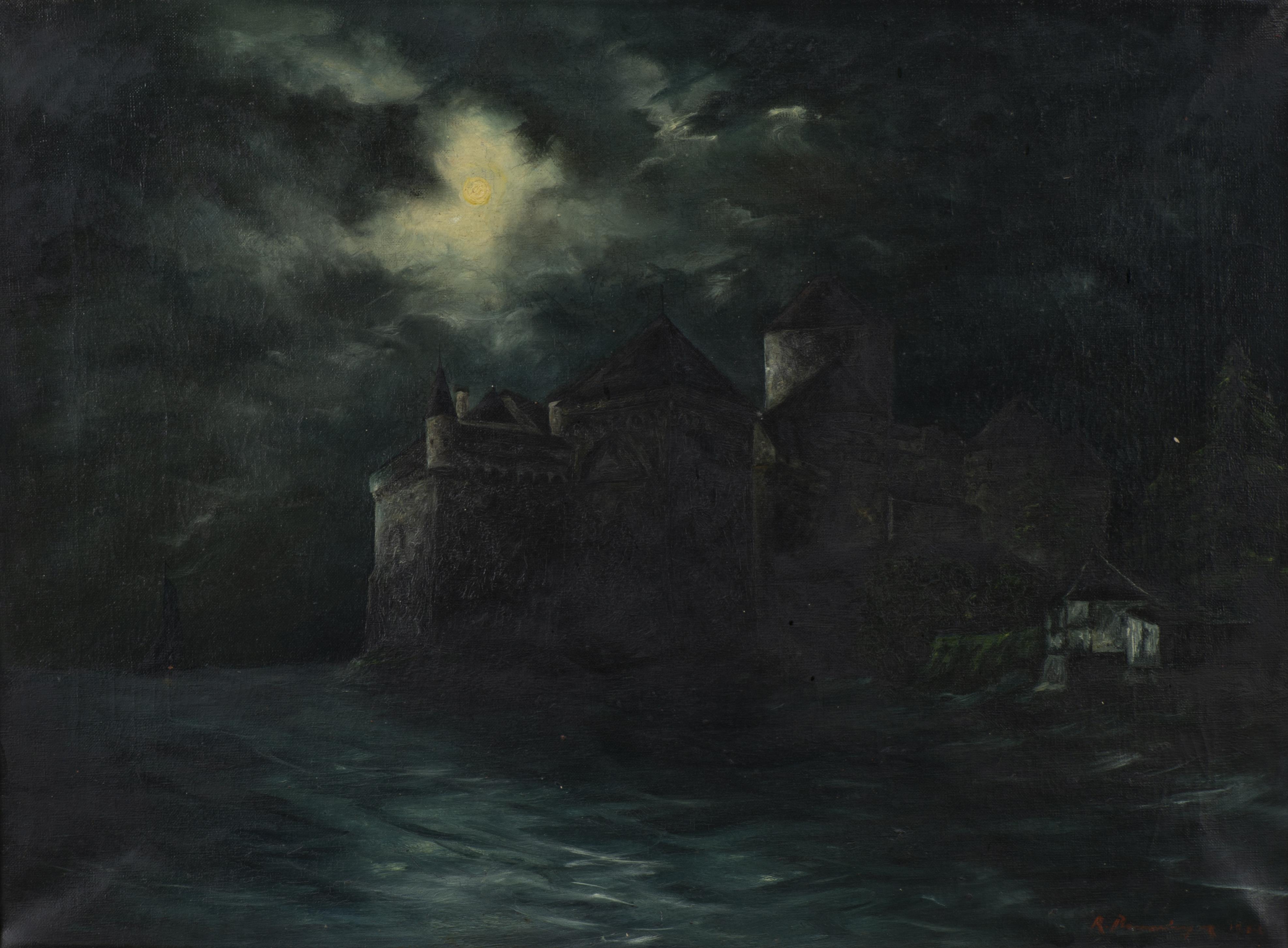 Robert BAUMBERGER (1895-1986), 'Chillon sous la tempête la nuit', huile