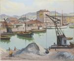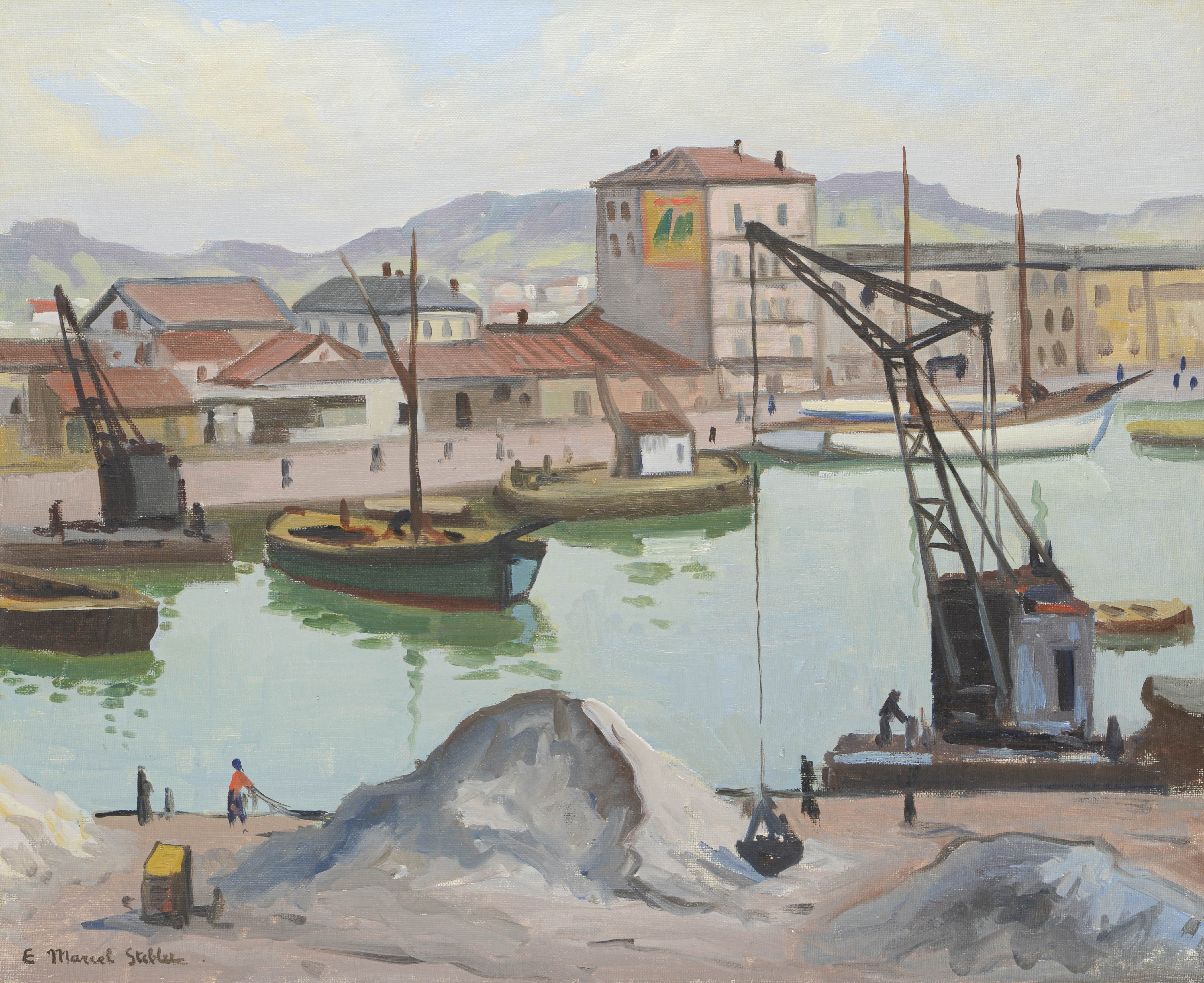 Marcel STEBLER (1906-1966), Vue d'un port, Huile sur toile, signé en bas à droite.