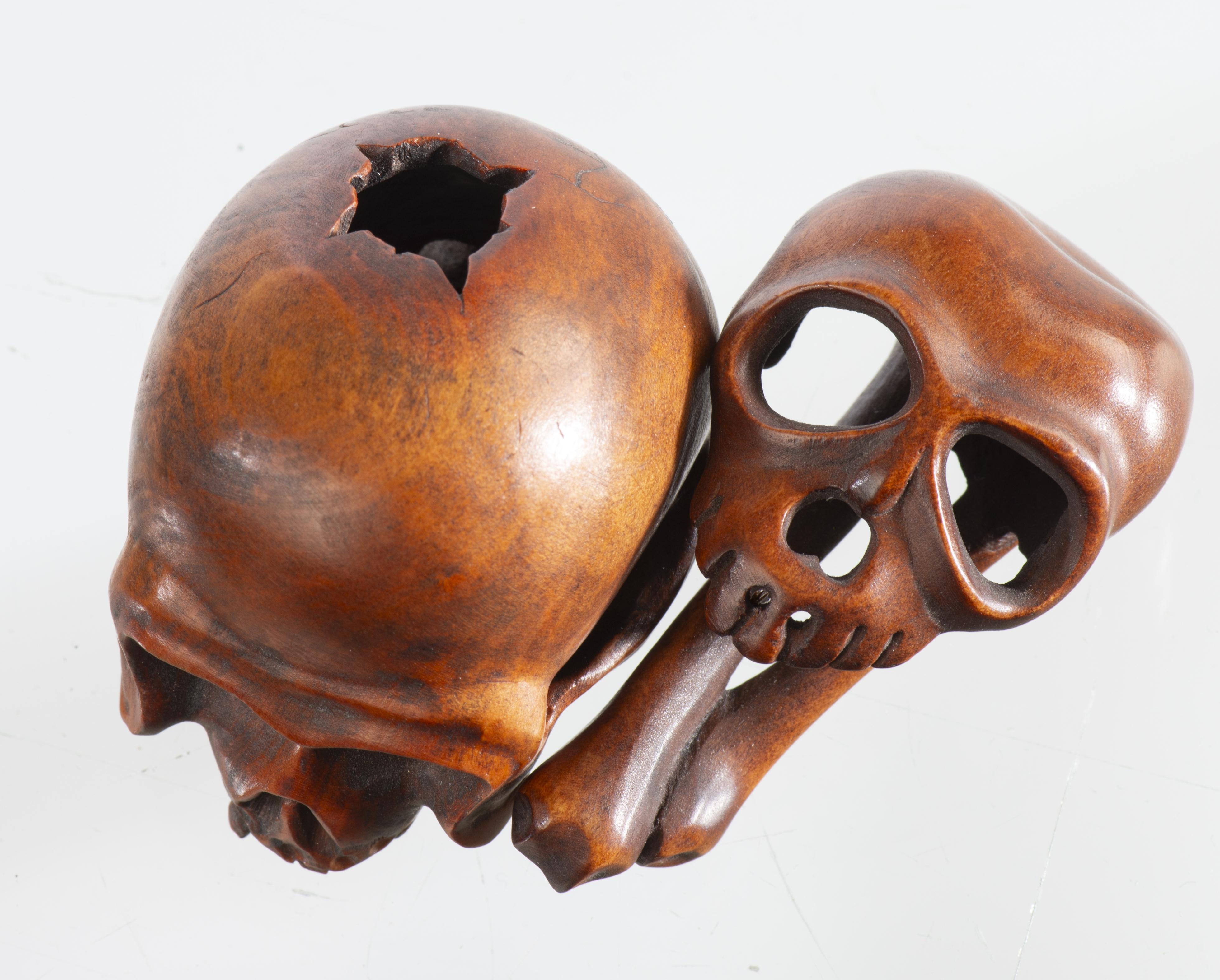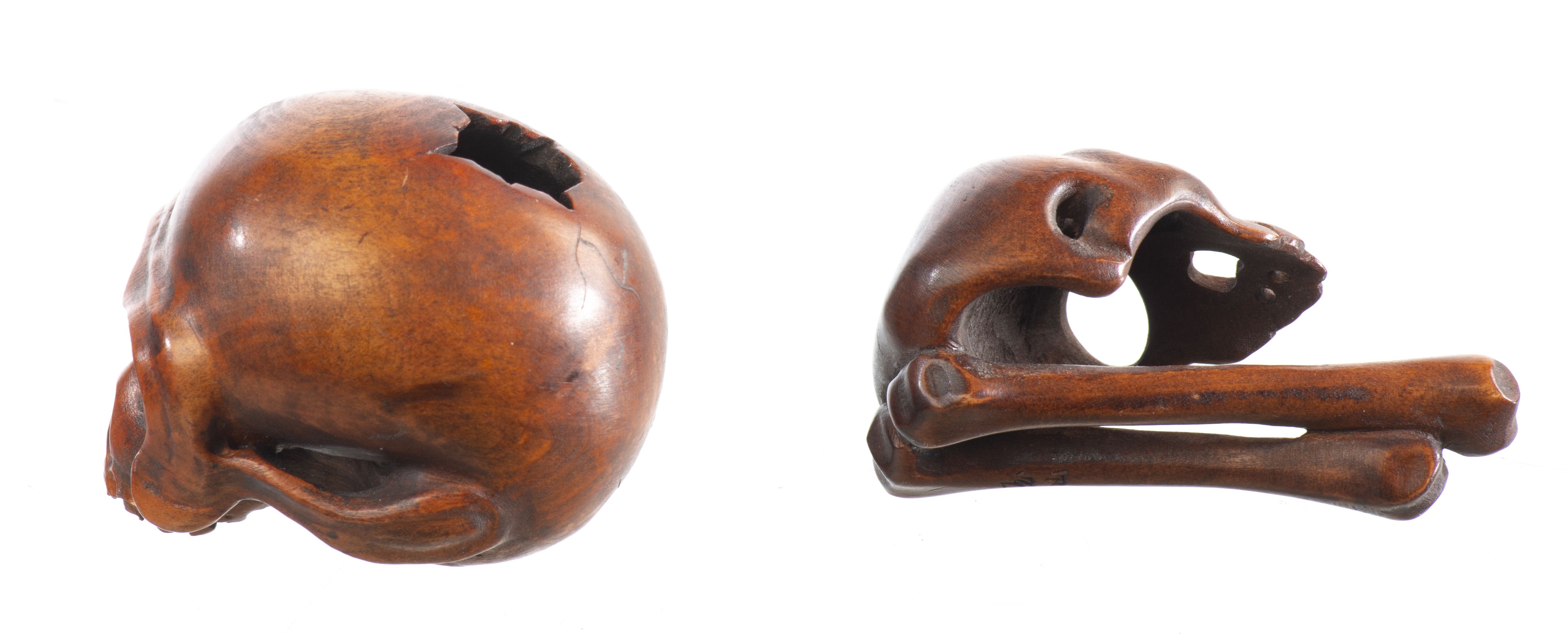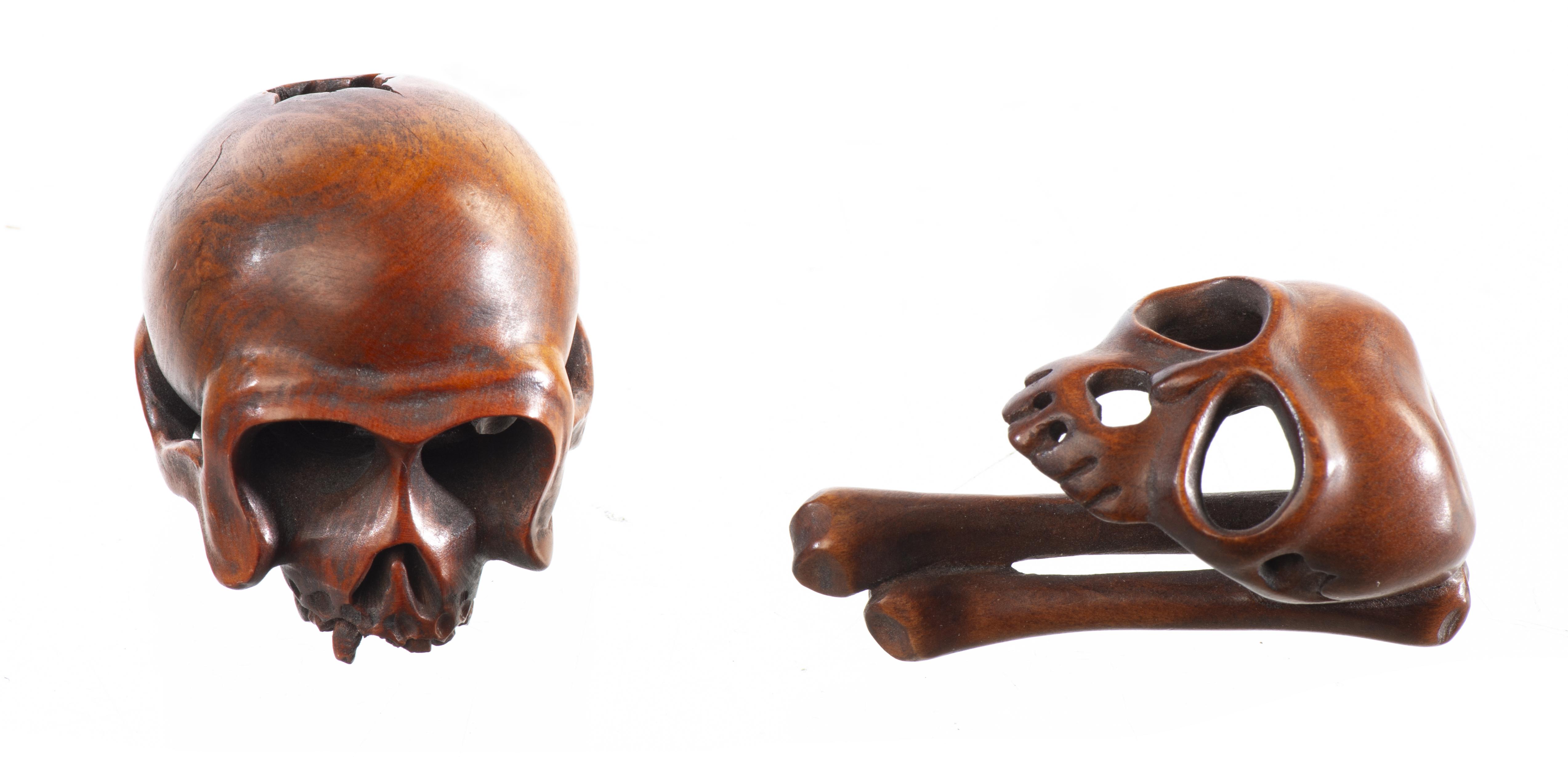 JAPON - Deux Netsuké en buis représentant des vanités. XIXe