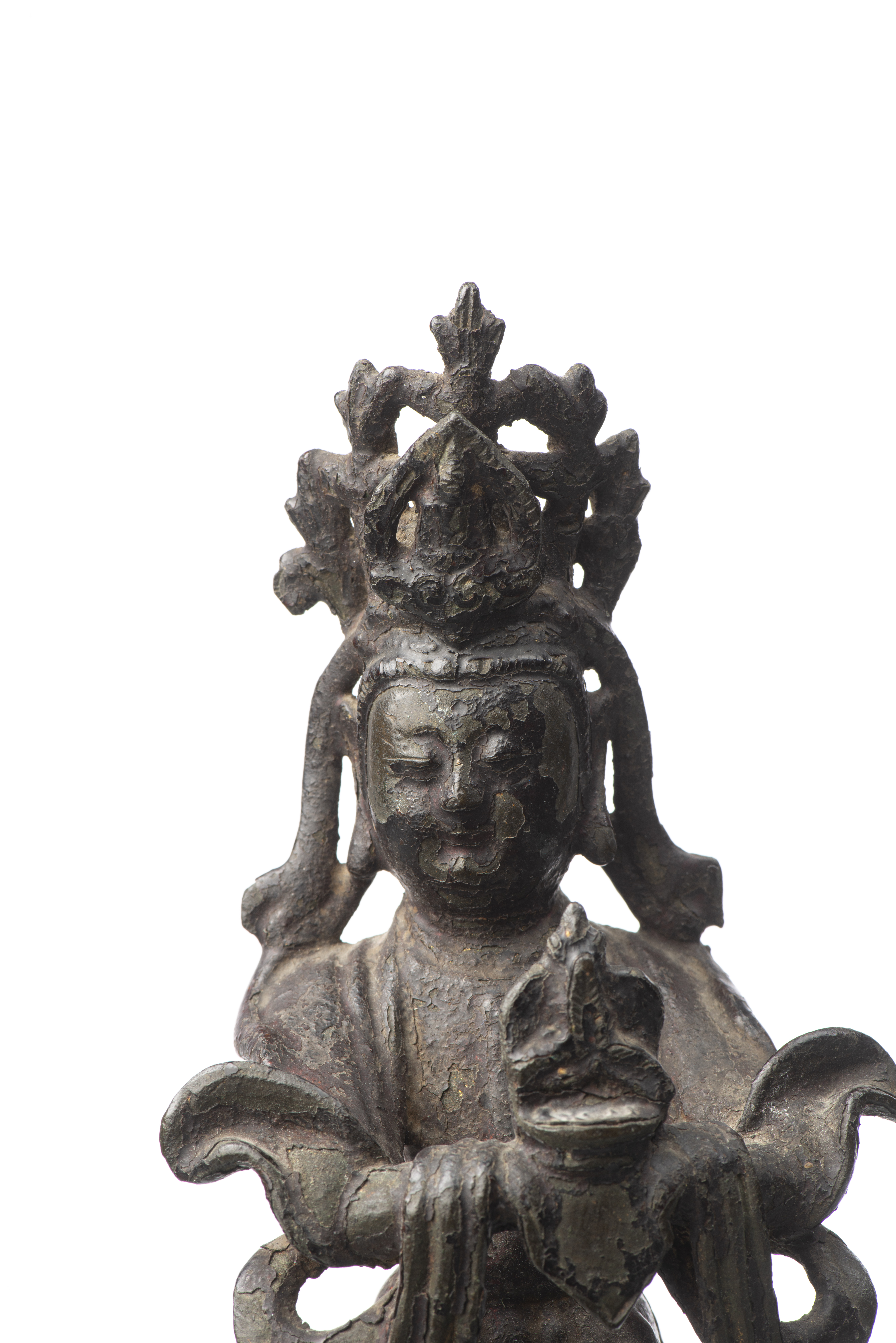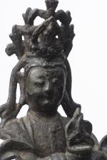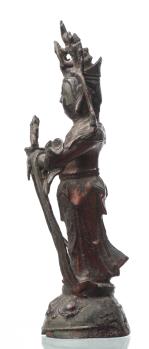 CHINE - Sujet en bronze debout avec résidus de laque rouge figurant une Guanyin, époque Ming