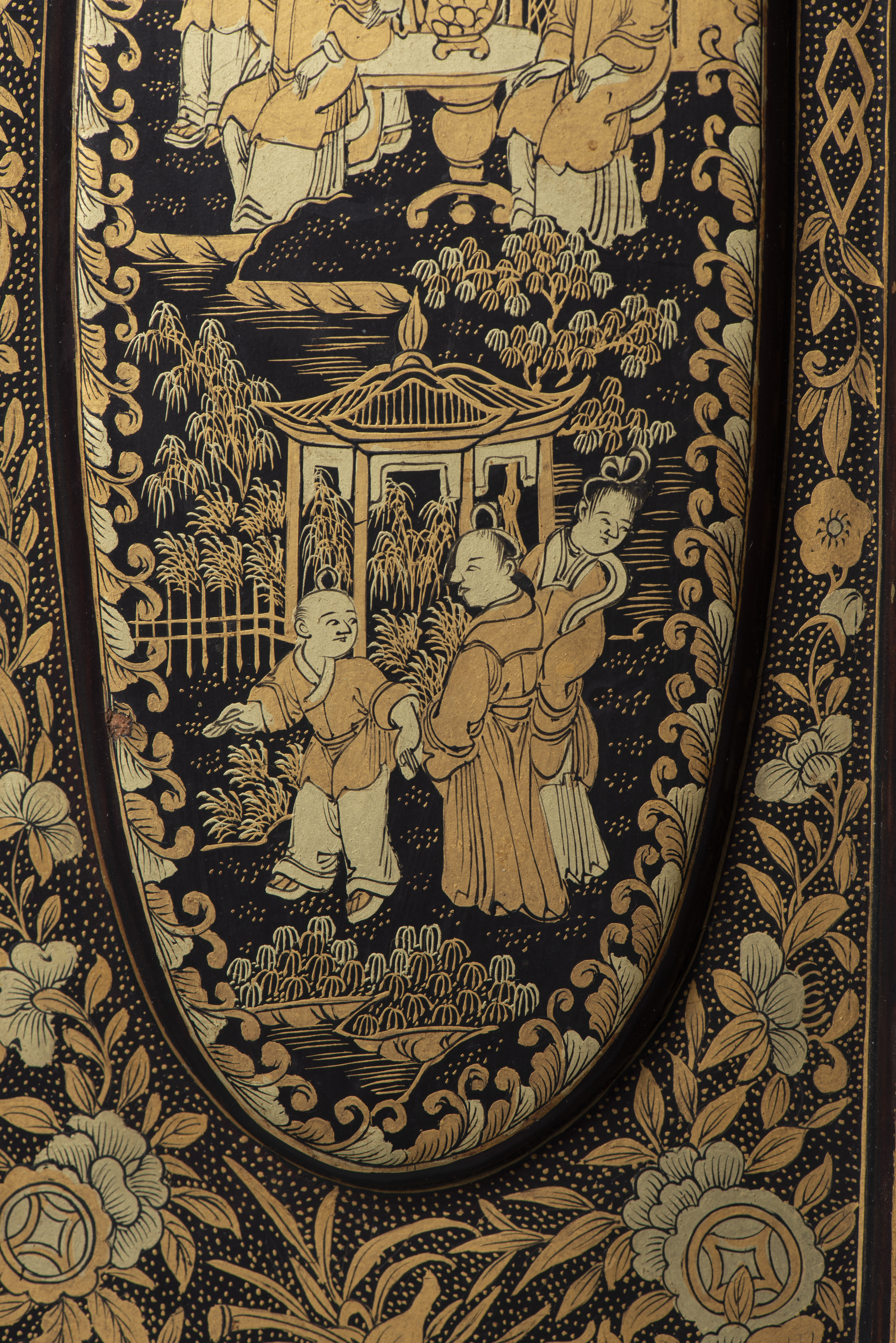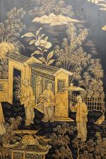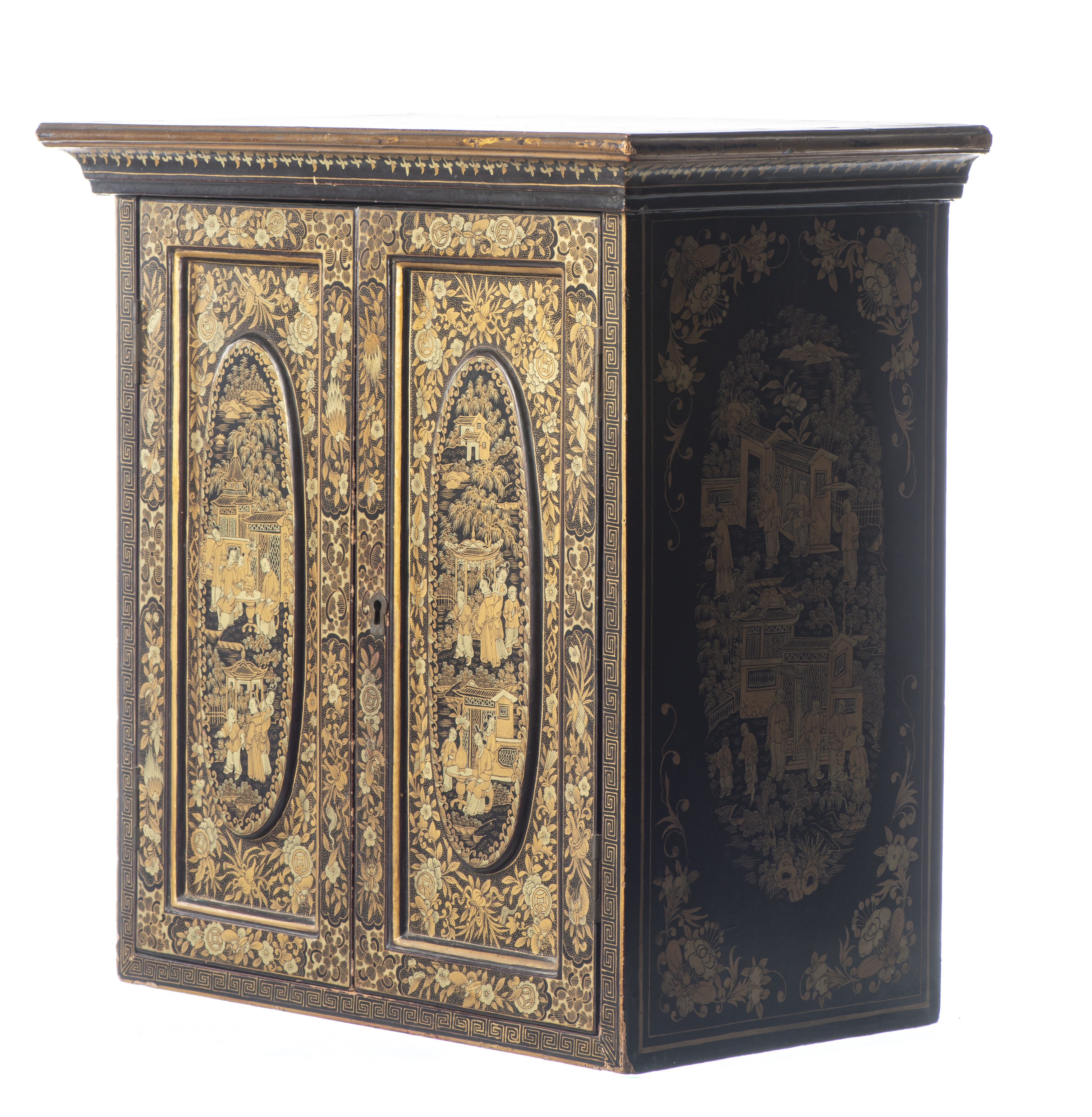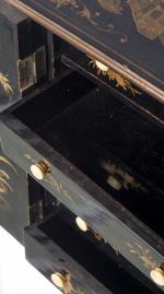 CHINE - Petit cabinet en laque de Canton à décor à l'or sur champ noir