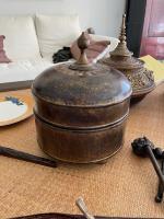 BIRMANIE - Bol à offrande en teck et laque à traces d'or