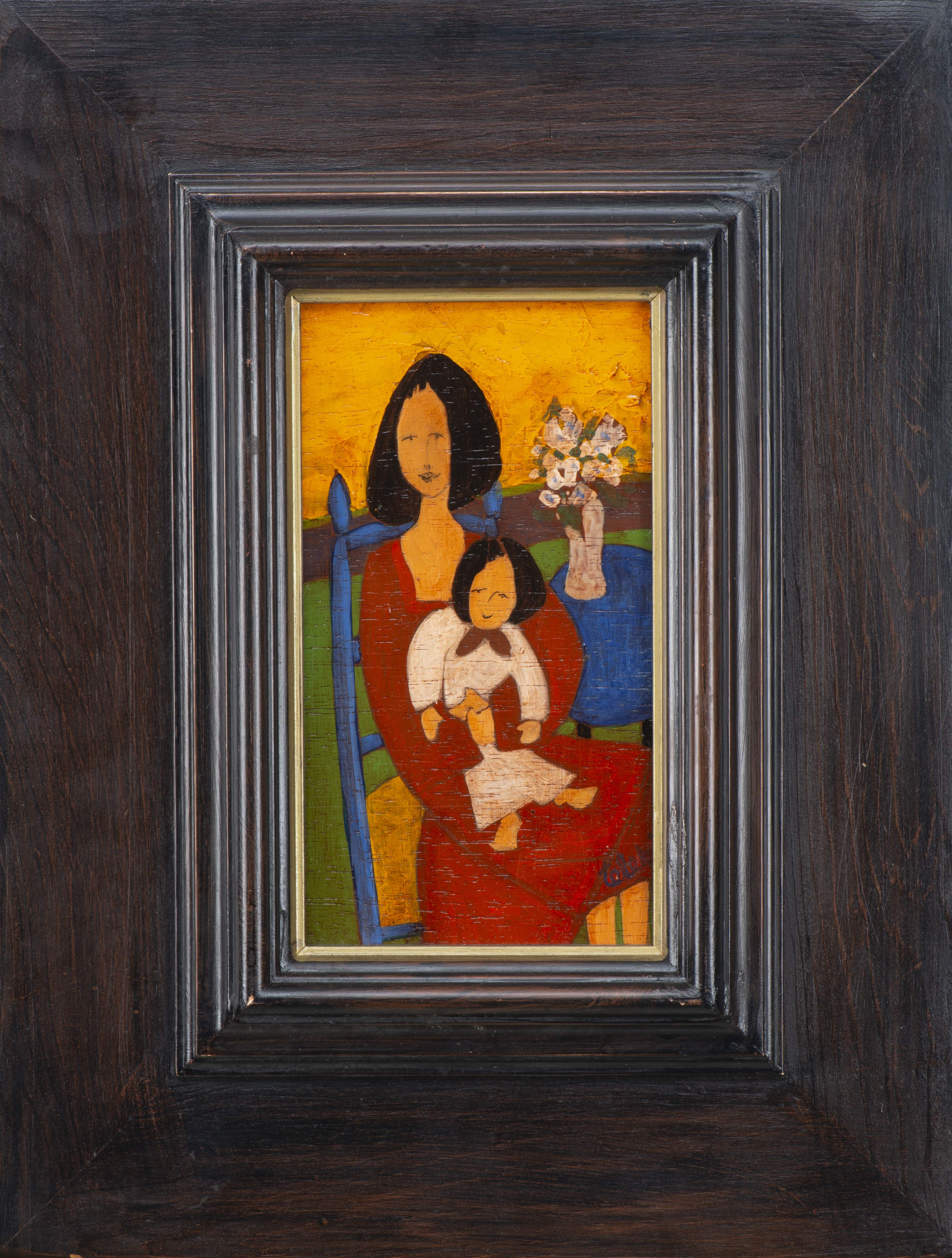 André TELEKI (1928-1999), "Chaise bleue", huile sur bois, signé et annoté au dos.