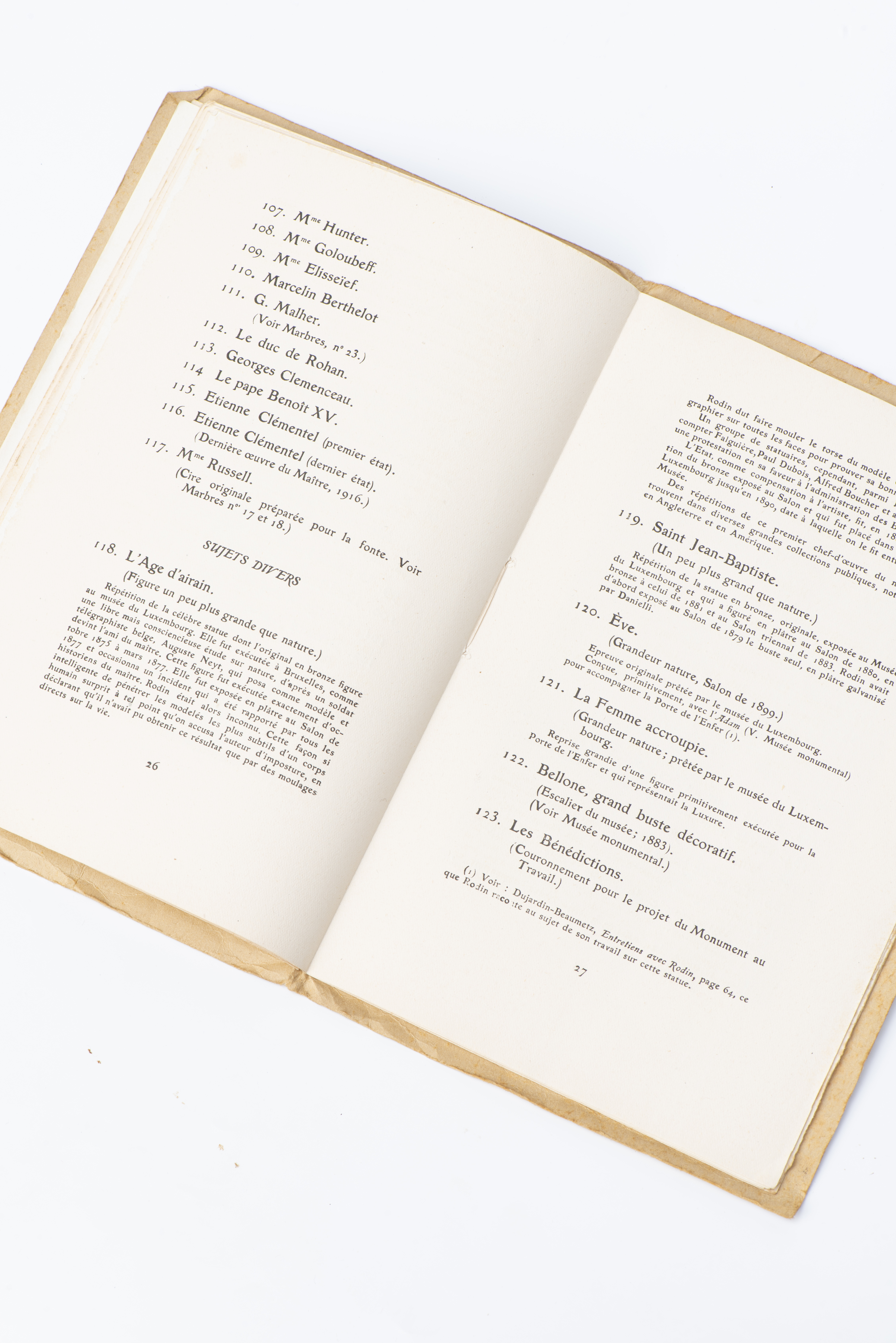 - Léonce BÉNÉDITE, Catalogue sommaire des Œuvres d'Auguste Rodin et autres œuvres d'art de la donation Rodin, Paris, 1919, Imprimerie Frazier-Soye, Ministère de l'Instruction Publique et des Beaux-Arts.