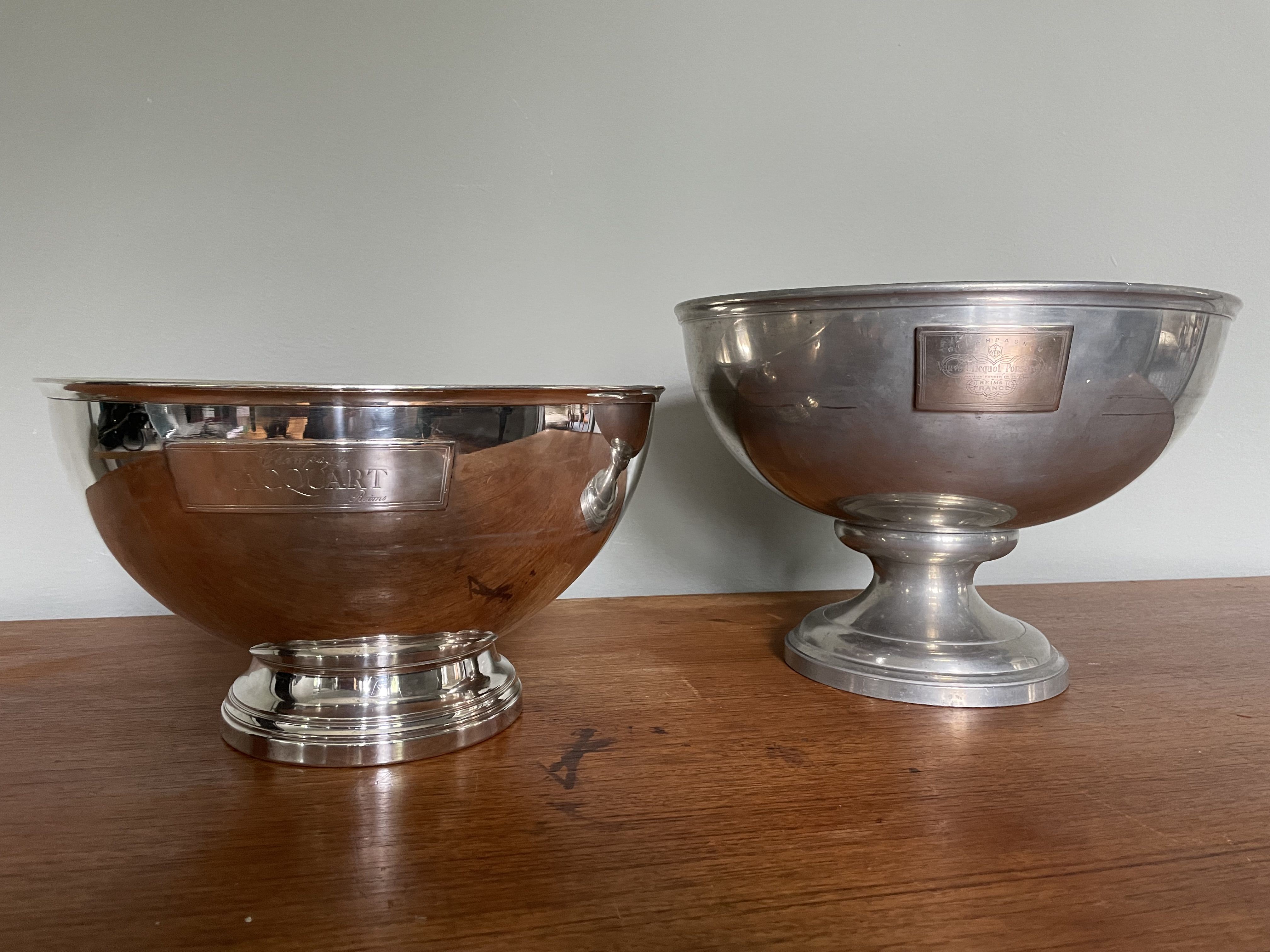 Lot de 2 seaux à champagne Jacquart Reims (H : 21 cm, Diam : 35.9 cm) et Veuve Clicquot Ponsardin en métal (H : 26.8 cm, Diam. : 38.6 cm)