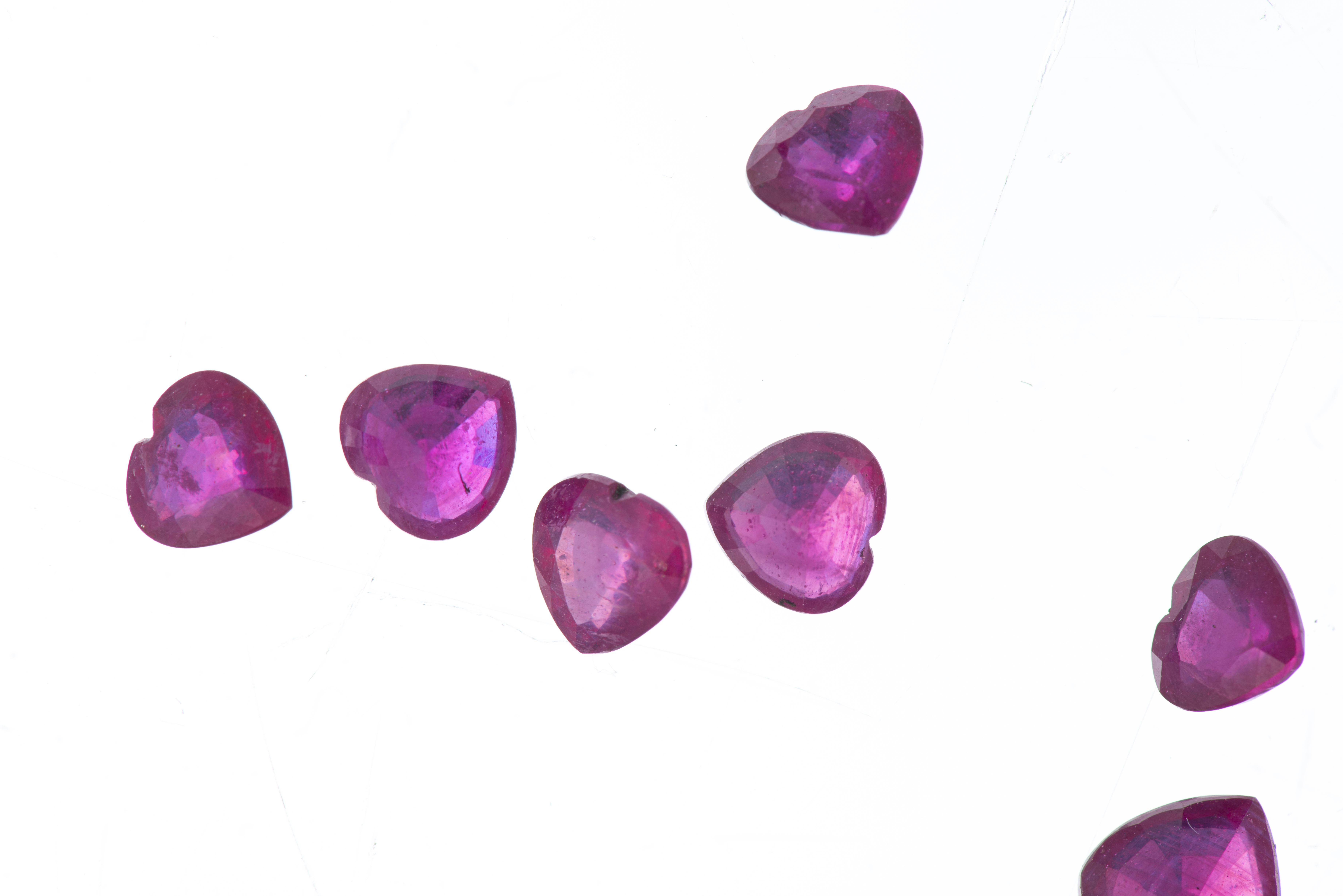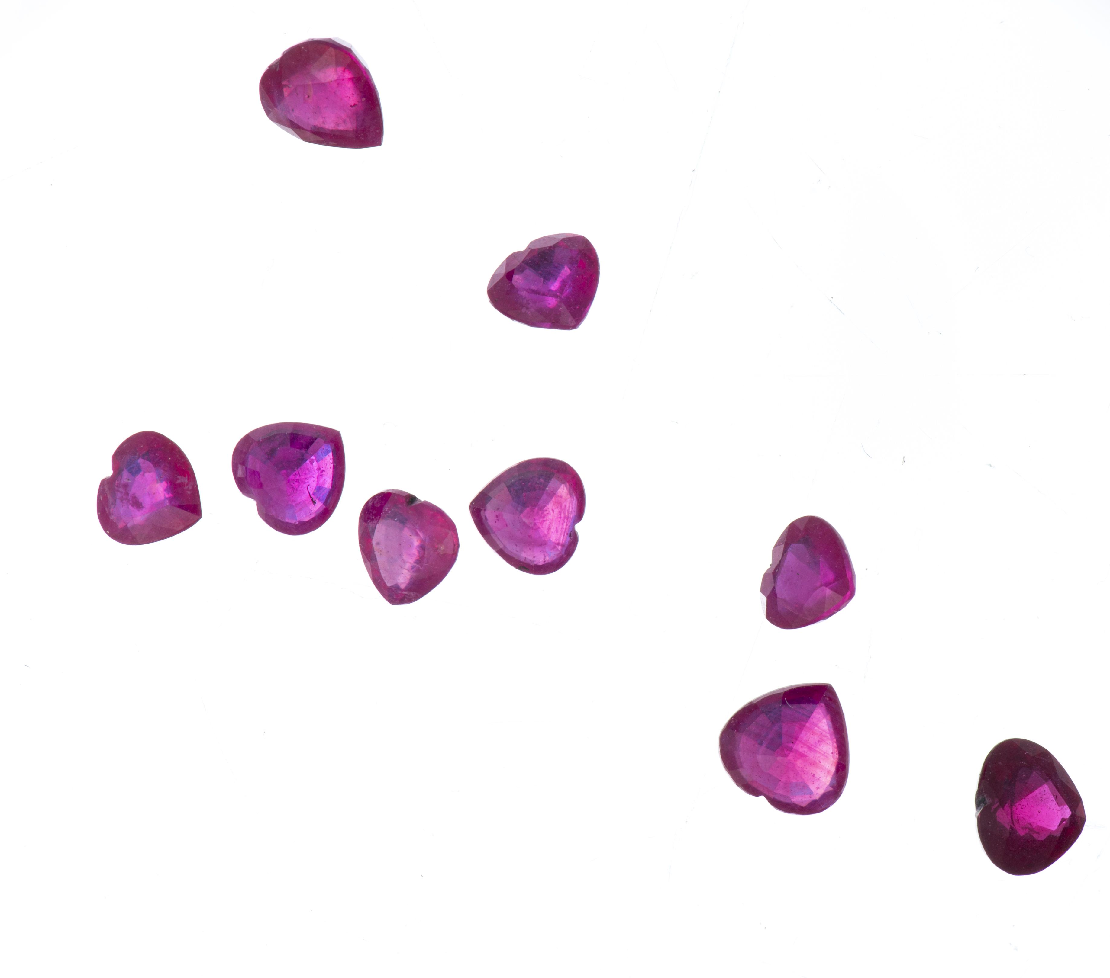 Ensemble de 9 petits rubis de Madagascar de taille cœur pour environ 8.70 cts traités au vert de plomb.