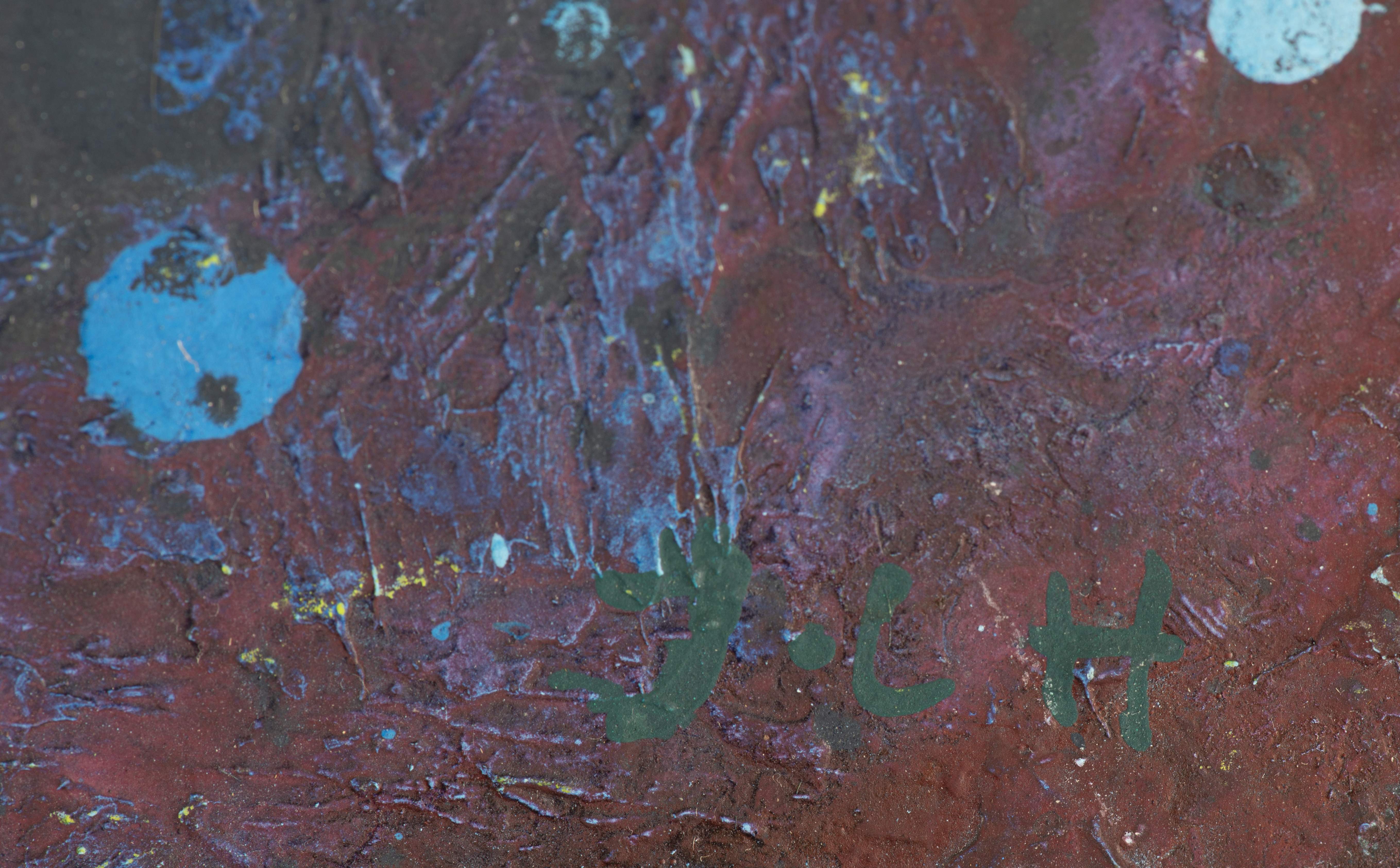 On y joint une petite œuvre "Peinture" à la dispersion sur panneau de copeaux de bois contrecollé, monogrammé en bas à droite.