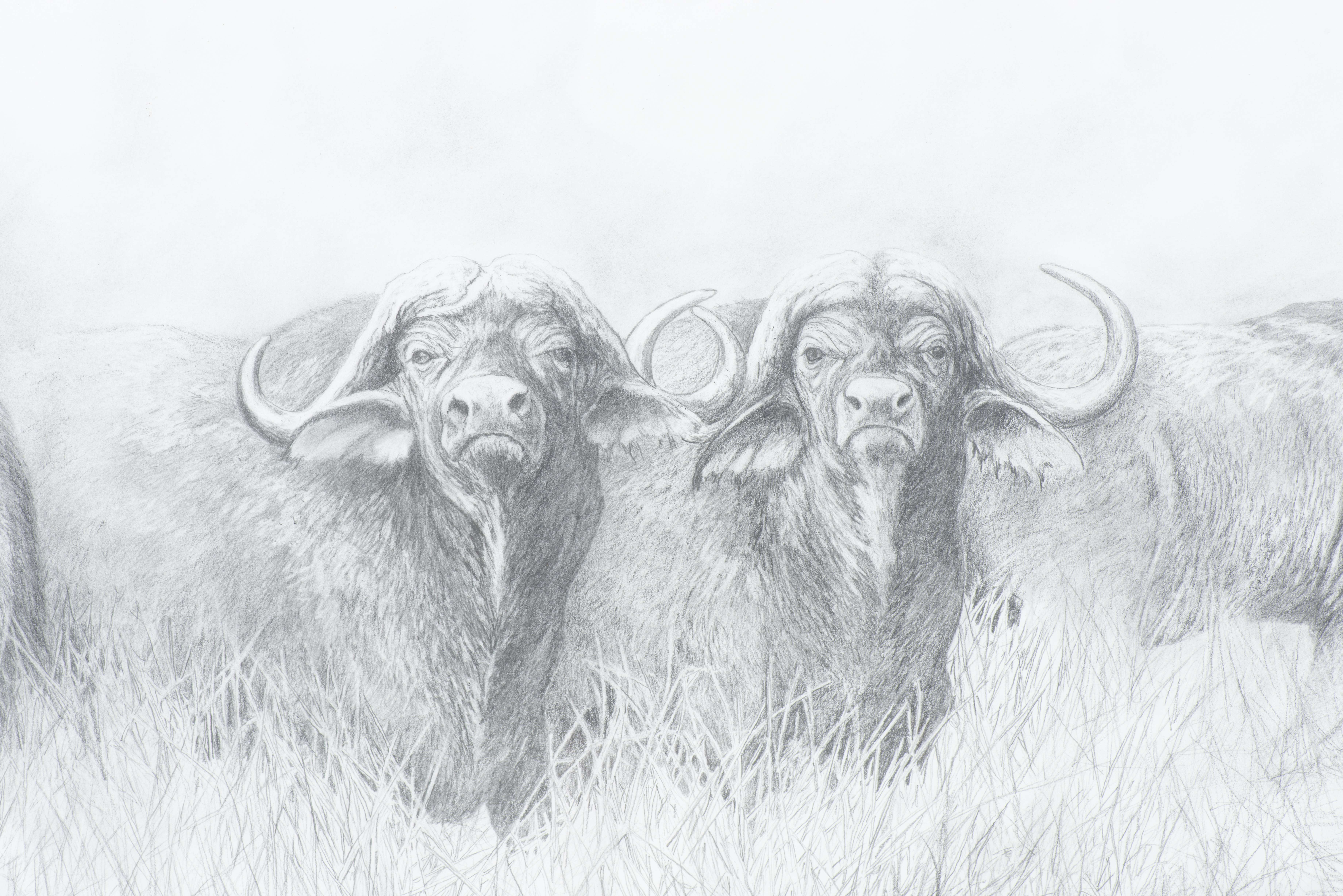 Rudi KOHL (1964), 'Buffles', crayon sur papier, signé en bas à droite.