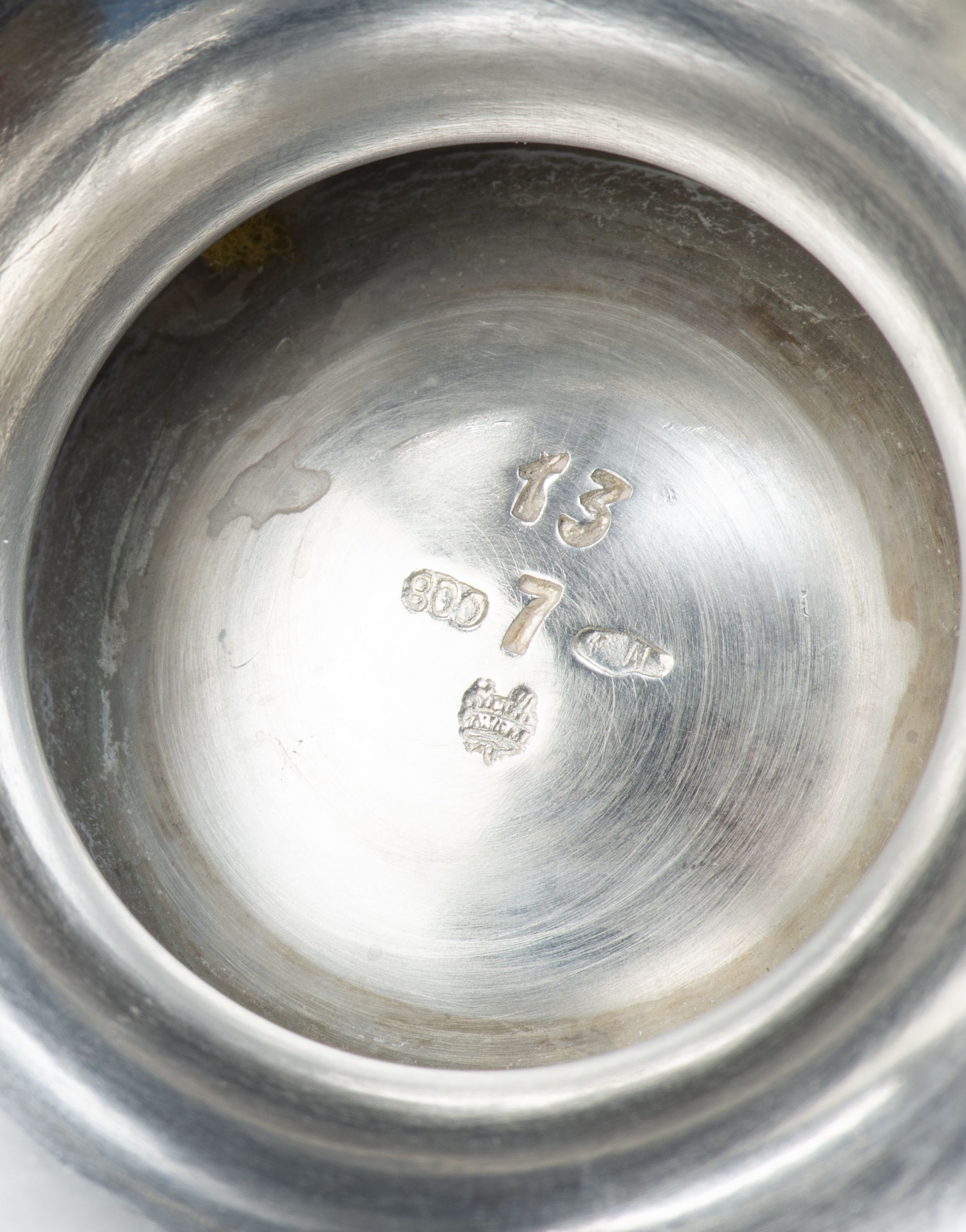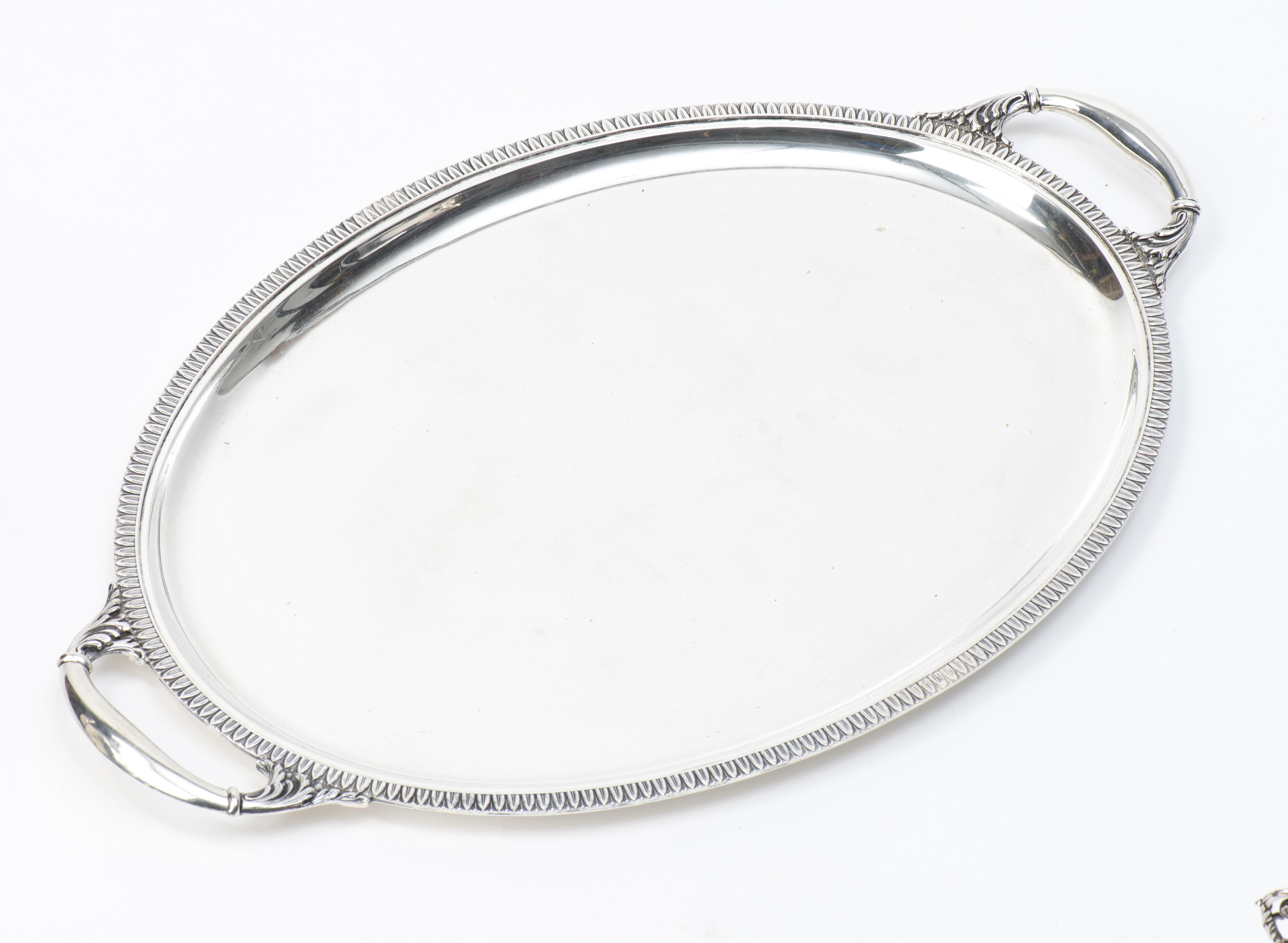 Service à thé en argent italien .800 à décor de feuilles de Laurier