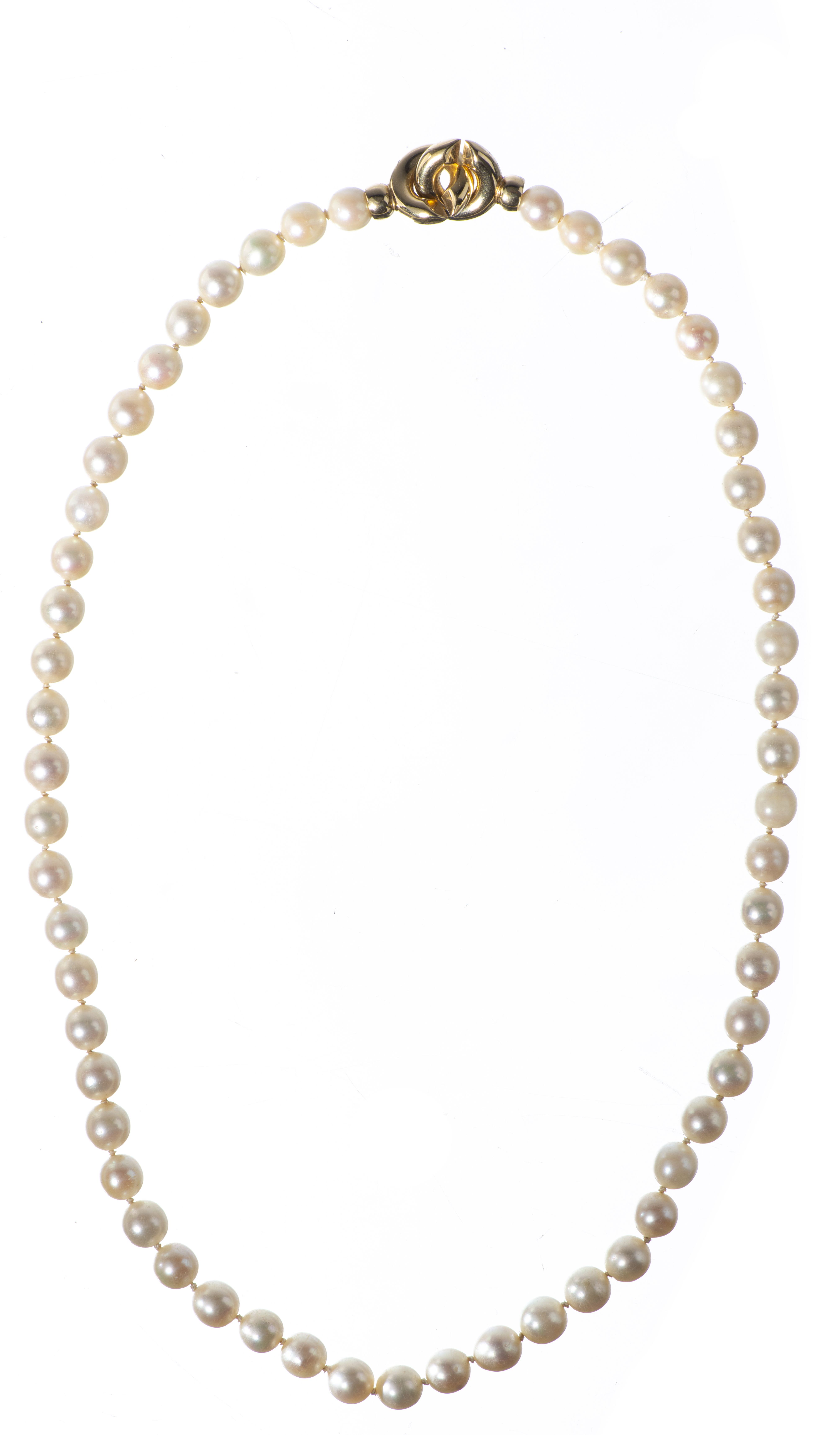 Tour de cou de 56 perles de culture Akoya de 7-7.5 mm avec fermoir en or jaune .750