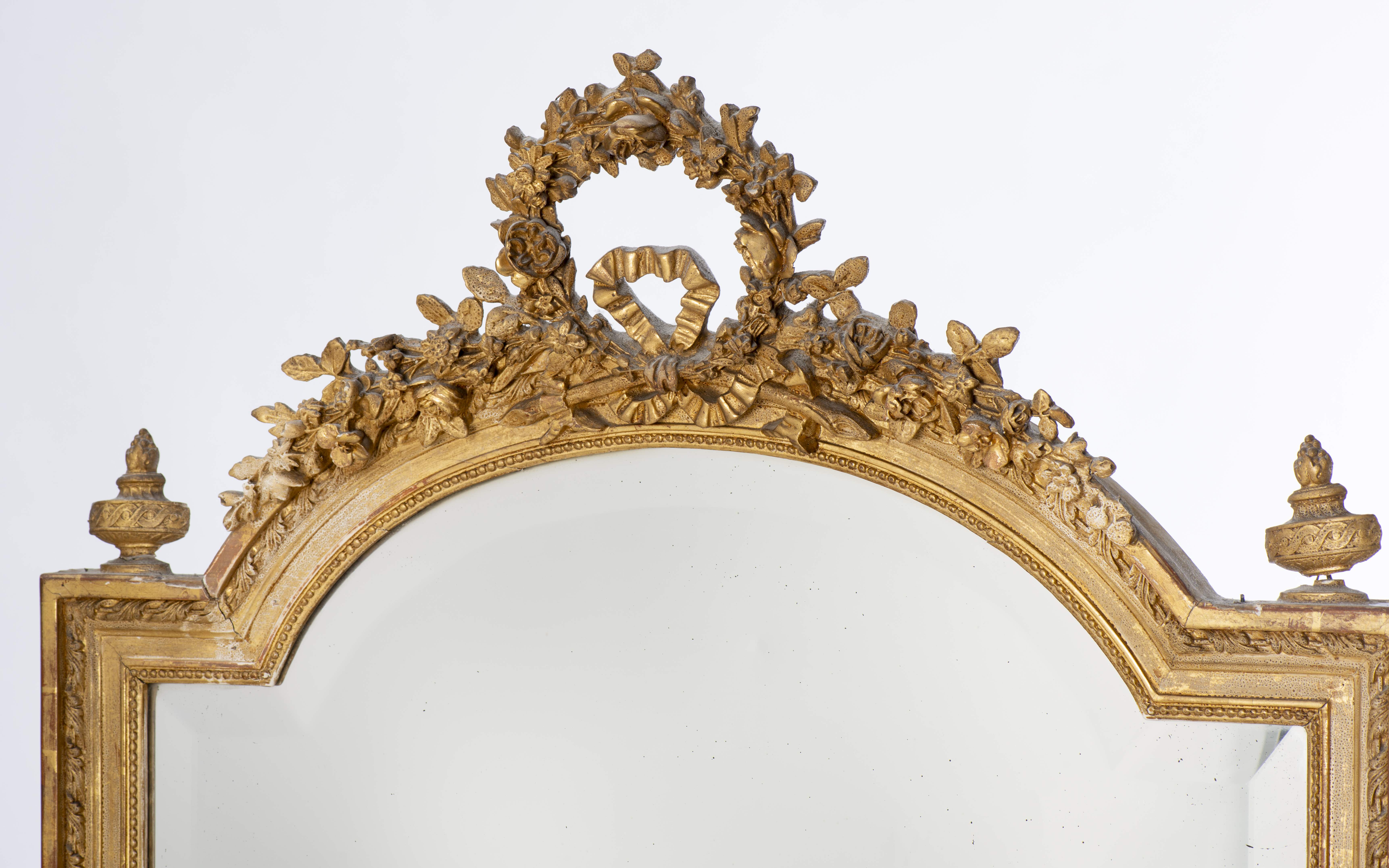 Travail français XIXe, miroir, rectangulaire biseauté à cadre en stuc doré d'époque Napoléon III.