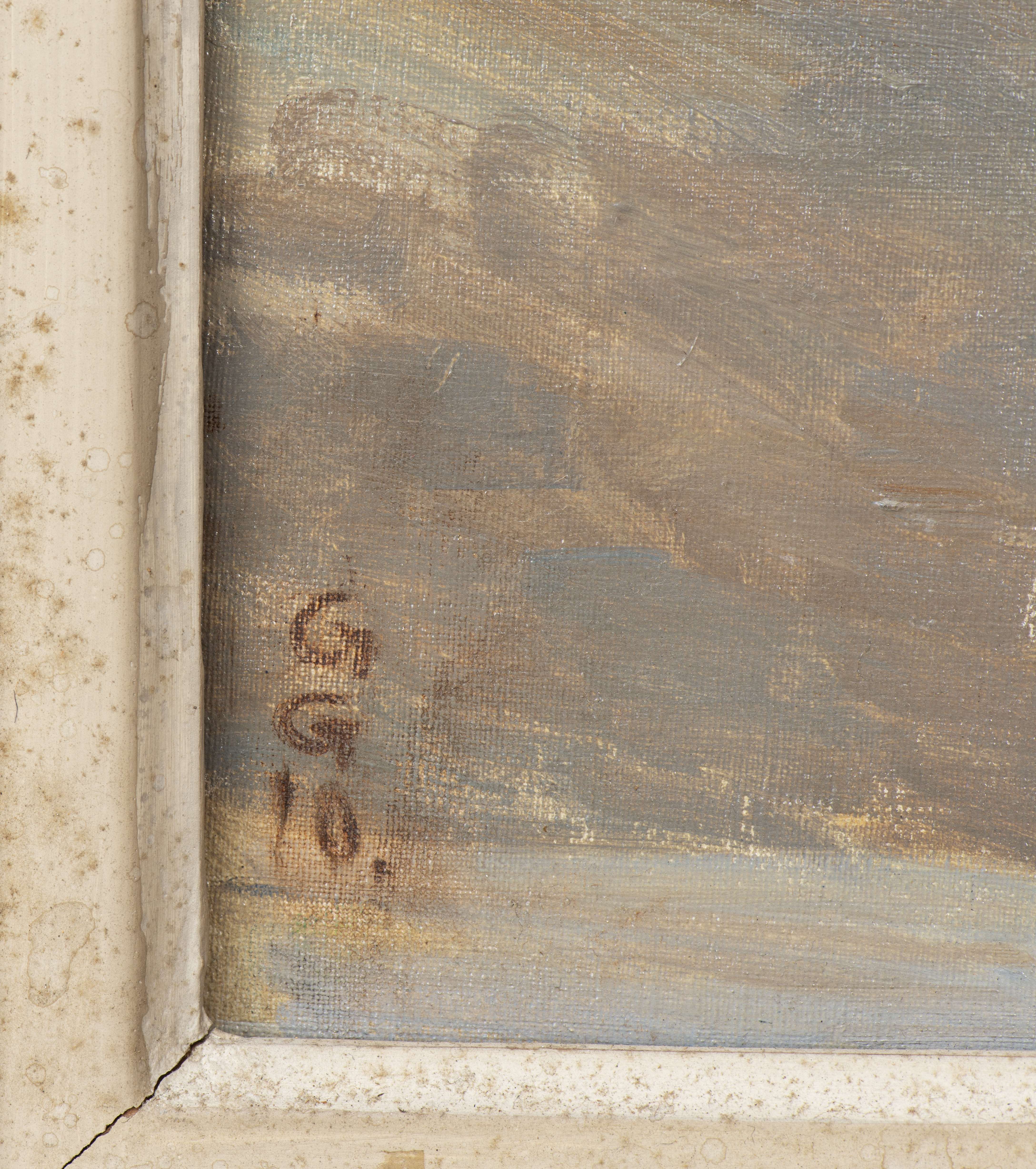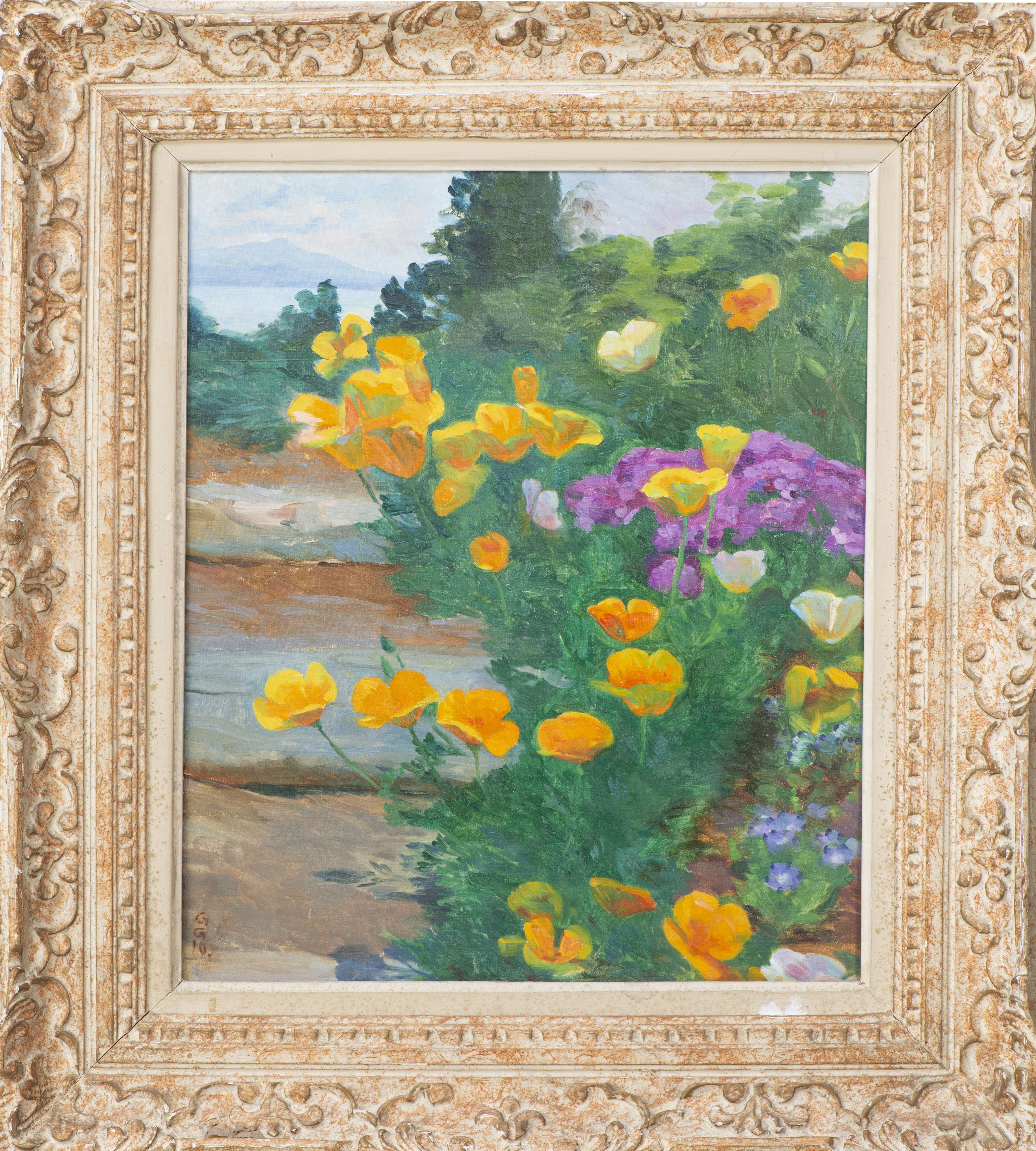 Travail Suisse (XXe), 'Coquelicots jaunes', huile sur toile, monogrammé GG et daté 10 en bas à gauche.